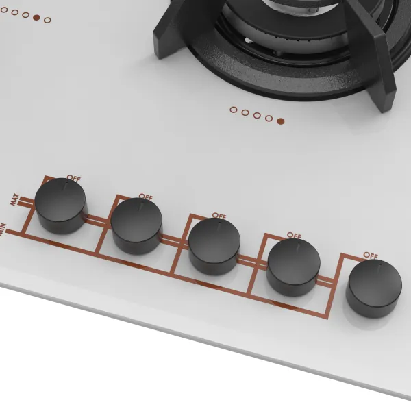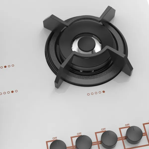 تعداد شعله: پنج شعله با چیدمان استاندارد و شعله پلوپز در سمت راست