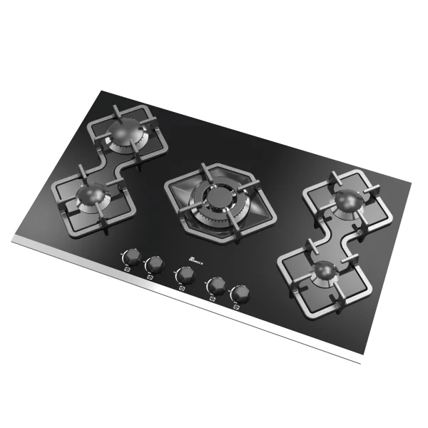اجاق گاز صفحه ای بیمکث مدل 5090 پلاس با پنج شعله و صفحه شیشه سکوریت مشکی براق