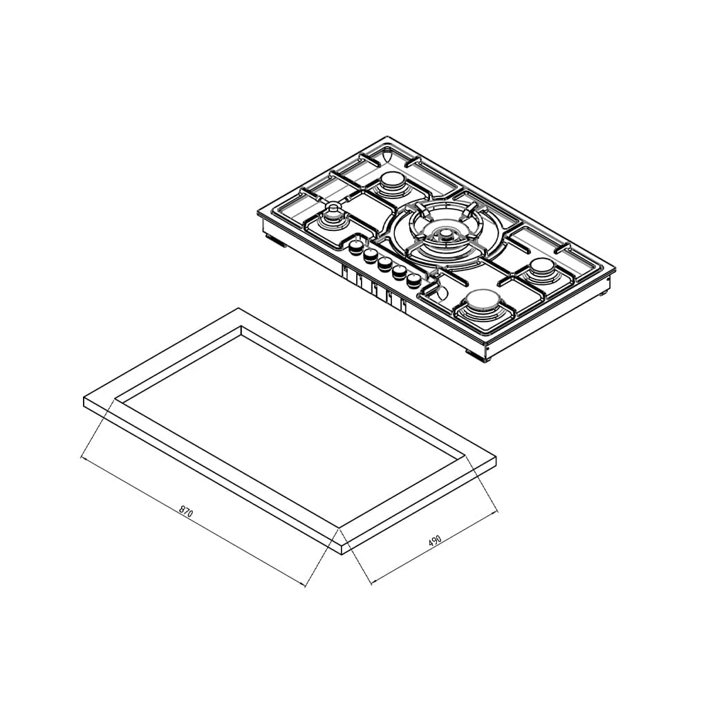 • ابعاد اجاق گاز: 89×51 سانتی‌متر | ابعاد برش: 870×490 میلی‌متر