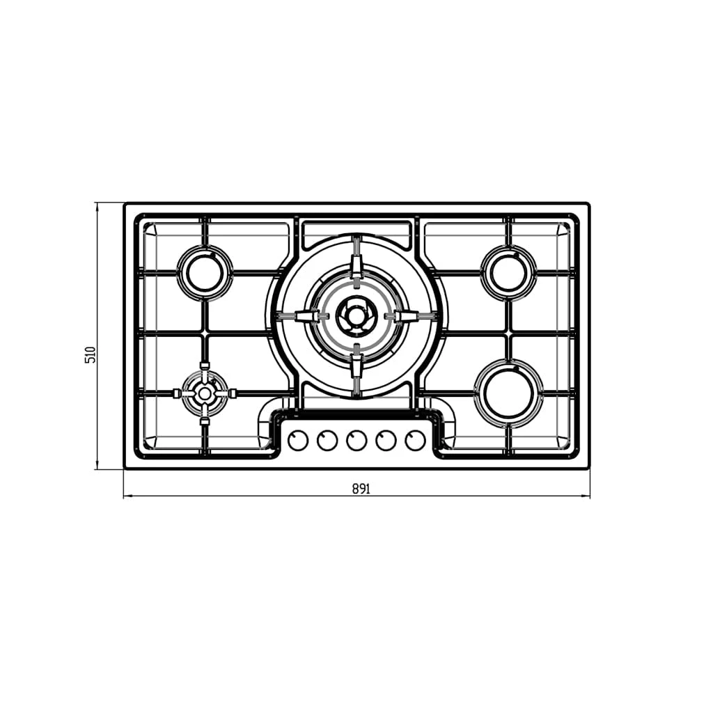 • تعداد شعله‌ها: ۵ شعله با چیدمان متقارن – مناسب برای پخت انواع غذا با حرارت یکنواخت