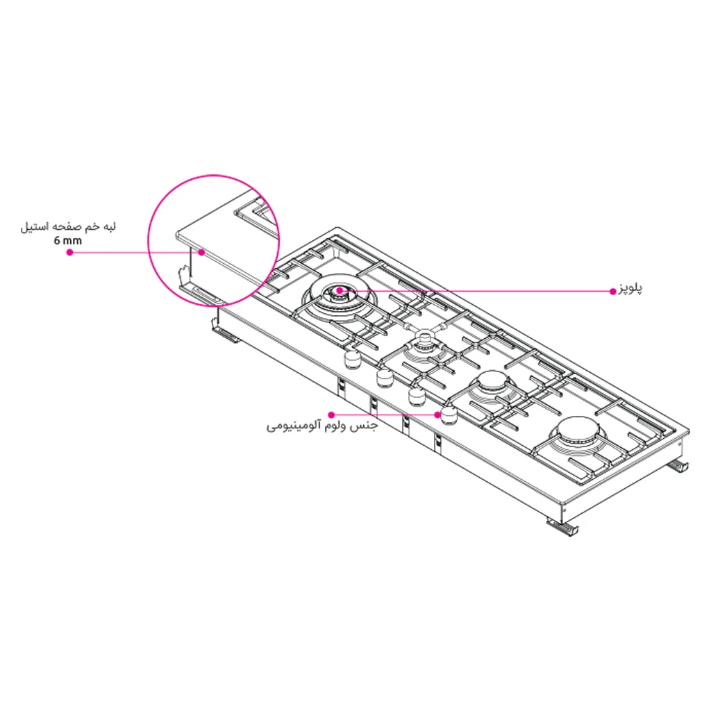 محل قرارگیری شعله پلوپز: سمت چپ، مناسب برای قابلمههای بزرگ