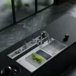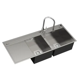 سینک استیل بیمکث مدل 4704 | با طراحی باکسی پلهدار و دو لگن کاربردی