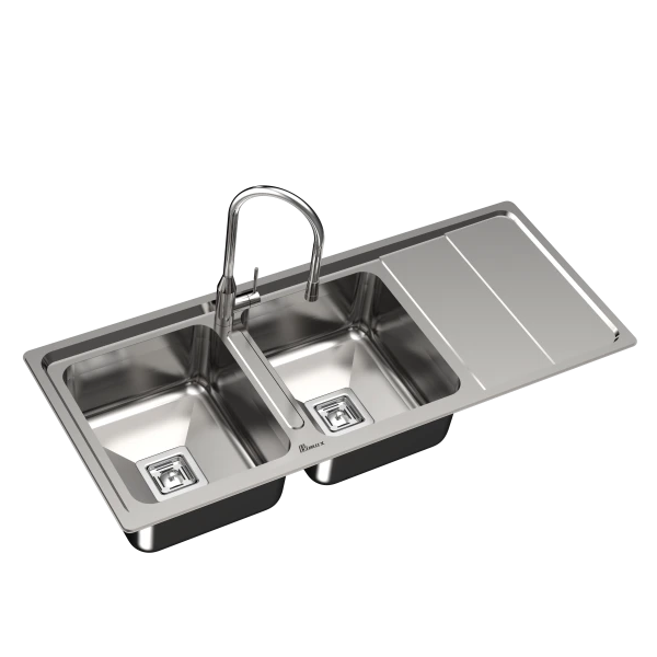 سینک توکار بیمکث مدل 842 با طراحی فانتزی و ساختار مقاوم از جنس استنلس استیل ۳۰۴، انتخابی ایده‌آل برای آشپزخانه‌های مدرن است. این مدل دو لگنه با عمق ۲۴ سانتی‌متر و ظرفیت ۲۴ لیتر، فضای کافی برای شستشوی آسان ظروف فراهم می‌کند.