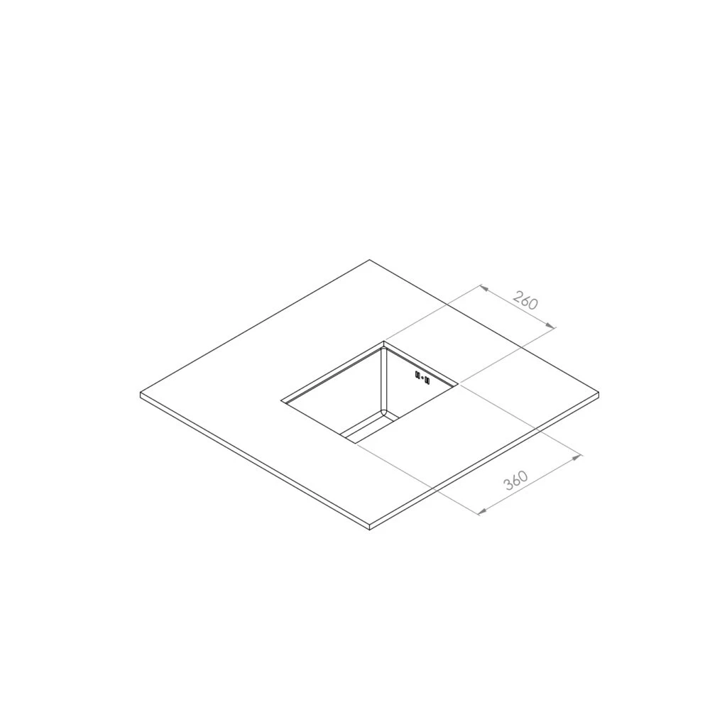 ابعاد برش کابینت (برای نصب آندرمانت): 360×260 میلیمتر