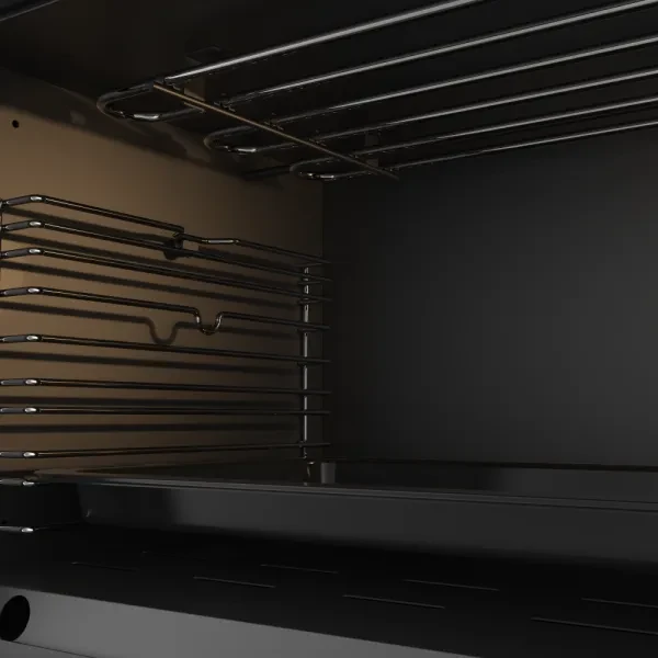 مصرف انرژی دستگاه با گرید A و سیستم عایق‌بندی حرارتی با الیاف سرامیکی با چگالی بالا، عملکردی اقتصادی و ایمن را به ارمغان می‌آورد. همچنین، لامپ ۱۵ وات داخل محفظه دید مناسبی در حین پخت غذا فراهم می‌کند.