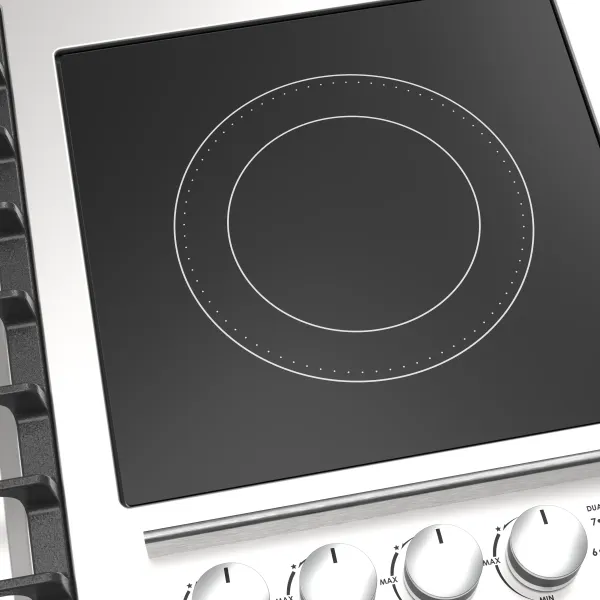تعداد شعله: پنج شعله با چیدمان استاندارد و شعله پلوپز در سمت راست