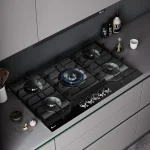 اجاق گاز صفحه ای بیمکث مدل ۲۲۰۲ با طراحی شیشه سکوریت مشکی، پنج شعله با سرشعلههای ایتالیایی دیفندی، انتخابی حرفهای برای آشپزخانههای مدرن است. این مدل با گرید انرژی A، علاوه بر زیبایی، مصرف بهینه انرژی را تضمین میکند.