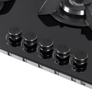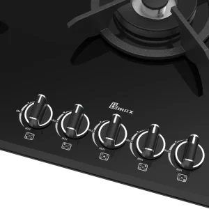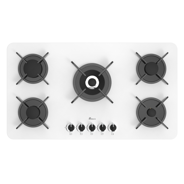 اجاق گاز صفحه ای بیمکث مدل 0048 – طراحی شیشه سکوریت با قطعات ایتالیایی و پنج شعله کاربردی