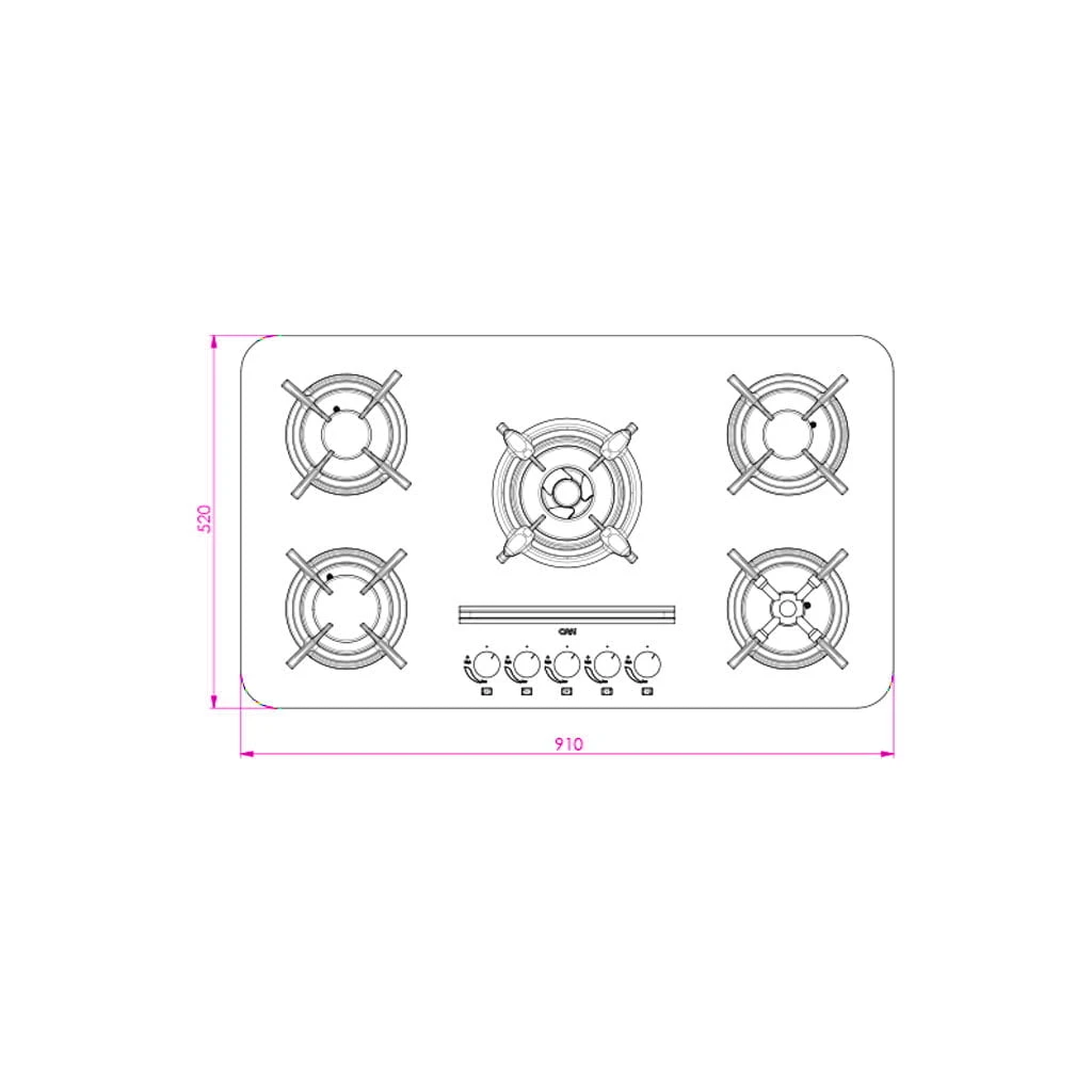 ✅ 5 شعله با طراحی مهندسیشده: فاصله استاندارد بین سرشعلهها باعث میشود قابلمهها حتی در بزرگترین اندازه (تا قطر 33 سانتیمتر) به هم برخورد نکنند.