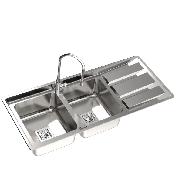 سینک توکار بیمکث مدل 4402 یکی از محصولات پرفروش برند Bimax است که با طراحی فانتزی، کیفیت ساخت بالا و امکانات کاربردی، انتخابی ایدهآل برای آشپزخانههای مدرن محسوب میشود. این مدل از استنلس استیل 304 ضدزنگ ساخته شده و با دو لگن عمیق، نیاز خانوادههای پرمصرف را بهخوبی پاسخ میدهد.